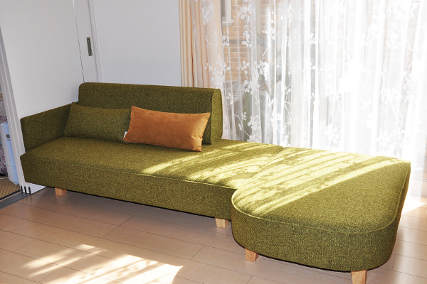 限られたスペースに圧迫感の少ないソファが欲しくて、ネットで見つけてすぐにお店に見に行き、その日に即決しました!! グリーンは明るすぎないか?と悩みましたが、お店の方も親切…