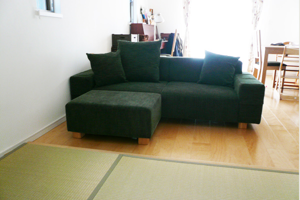 我が家のリビングはダイニングと一続きの空間で、ダイニングと畳スペースとを適度に区切れる背もたれの低めのソファを探していました。カタログでブリックを見た時に「これだ!」と感…