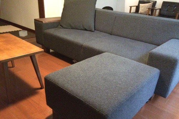 ソファに張ると、最初は、ウール生地の硬さを感じますが、使い込む程に馴染み、柔らかくなります。