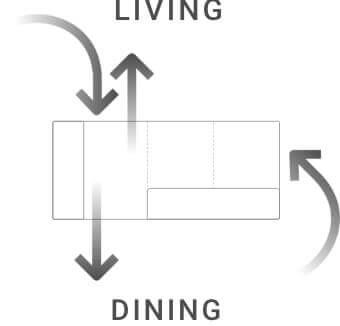 ソファはサイズが大きくなるほど、座るために背後から大きく回ることになります。ソファPIVOの場合は背の「抜け」によって、ソファ背面から座り込むことが可能に。リビングダイニングでは、それぞれのエリアをスムーズに繋ぐことができます。