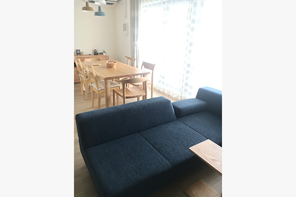 ソファの背の高さが、肘を置いてゆったり寛ぐのに丁度よく、一部背が抜けているデザインはお洒落なだけでなく、ダイニングとの導線となり、大変使い心地が良いです。