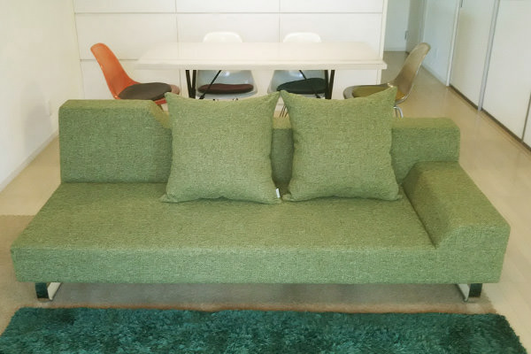 希望である①寝ころんでテレビが見やすい三人掛け、②ダイニングに座った人の視界を遮らない程度の低さ、③スタイリッシュさを感じさせるフォルム、これらを叶えてくれるのがソファSIESTAでした。