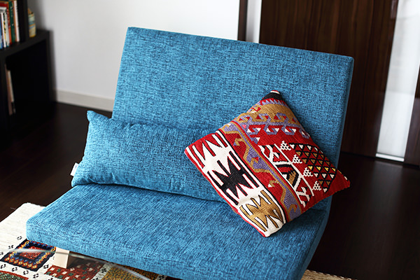 布地の質感と独特の色、何より床面生活の私のスタイルにぴったりのローなデザインが素敵です。