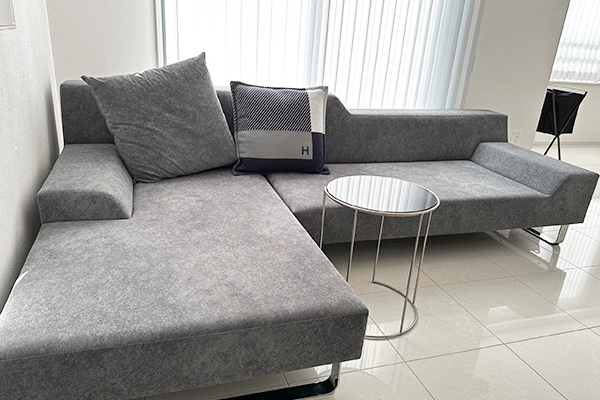 家に搬入してみると、座面の低いローソファであるソファSIESTAは空間を広くみせてくれ、スチールクロムメッキの脚は抜け感も出て、モダンな空間作りをしてくれました。