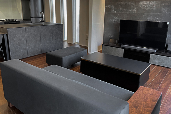 スツールもサイズ変更し、BRICKの奥行き900mmに合わせてオーダーした事で、連結して使用すると一体感があり、より一層高級感が生まれて感動しました。