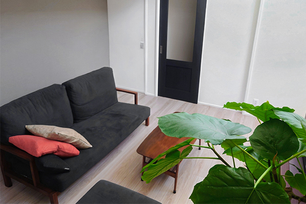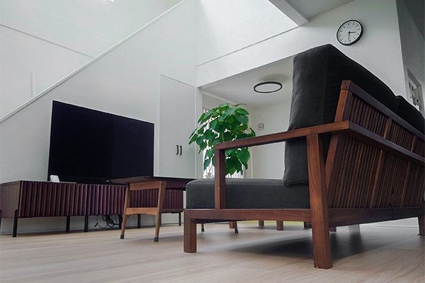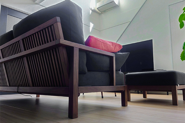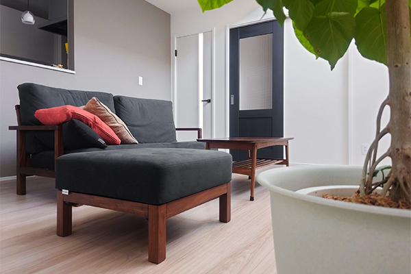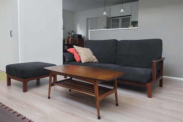 猫を飼う予定なので、ソファの生地を引っ掻きに強い素材にし、撥水防汚加工(パールトーン加工)もお願いしました。