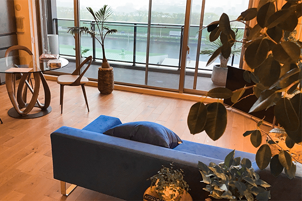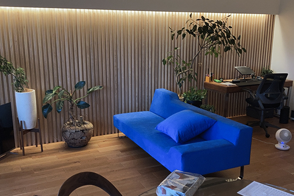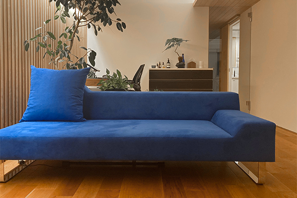 趣味である色々な種類の観葉植物と、それに映えるソファを探していた所、広いリビングで贅沢に横になれるSIESTAに出会い、生地はこのビビッドなブルーを選択しました。
