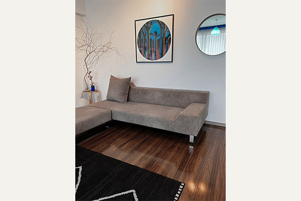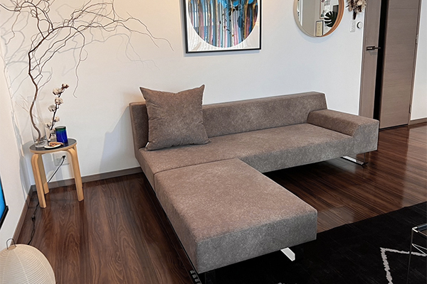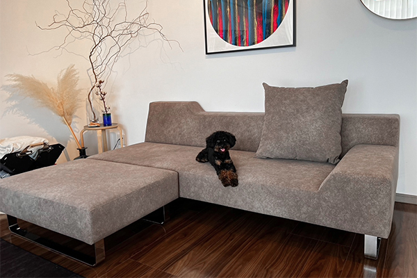 家族も犬も快適に過ごせるこのソファは、まさに我が家のくつろぎの中心。