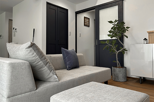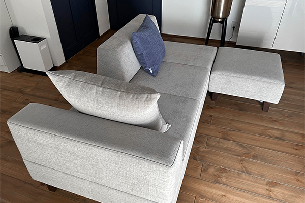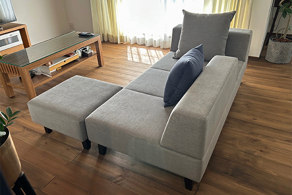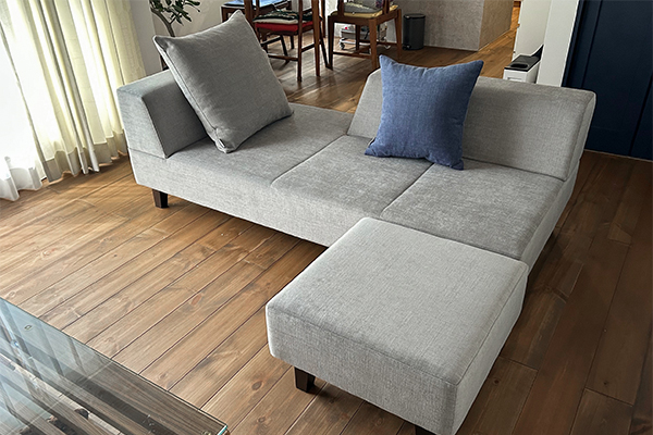 わが家は間取り上、ダイニングとリビングの間にソファを置かなければならず、圧迫感もなく抜け感と遊び心のあるこのソファPIVOはまさにドンピシャ!