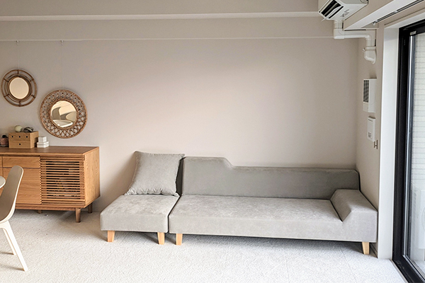 座面が低めで圧迫感のないソファを探していたところ、SNSで見かけて一目惚れし、ショールームで実物を見て購入を決めました。
