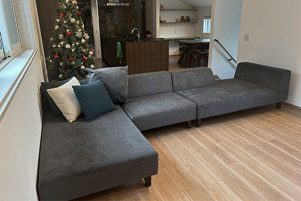 家族全員がくつろげるように、カウチセットに1人掛けの肘なしパーツを追加購入しました。