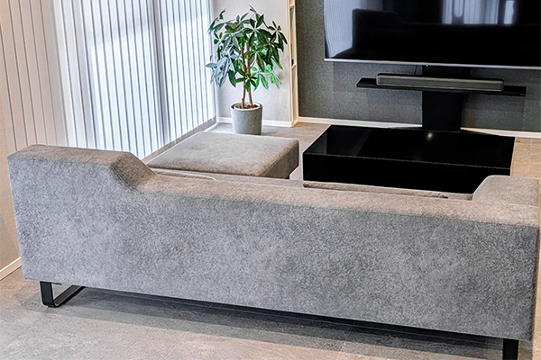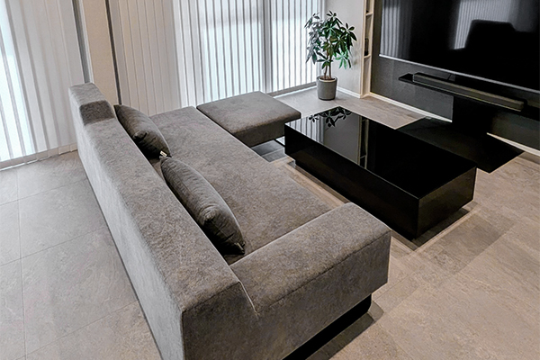 グレー基調のLDKにぴったりと馴染む、上品で落ち着いた雰囲気のソファです。