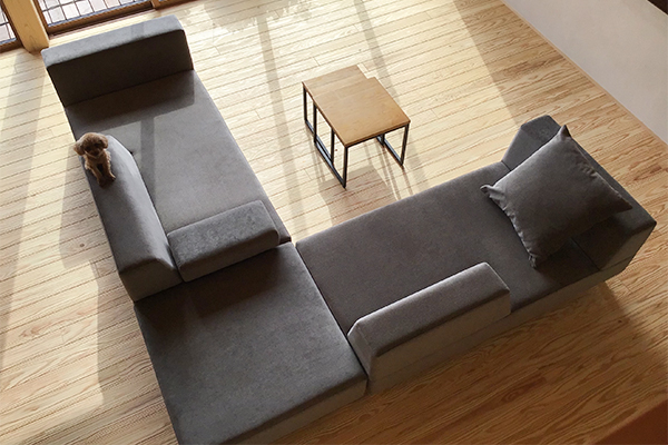 どのソファもステキだったので悩んだのですが、我が家はLDKが続きの間取りなので、背面からも利用できるソファPIVOを選択しました。