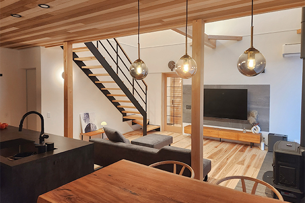 木の温もりとアイアンやキッチンの黒で統一した、こだわりのナチュラルモダンな新居。