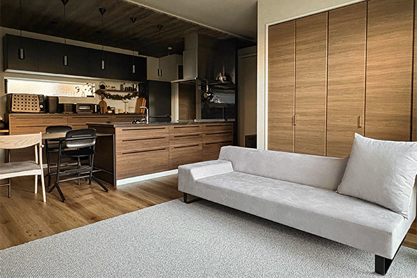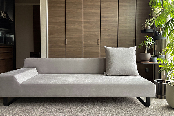 ソファの後ろの収納は開けたままのことが多いので、背が低く圧迫感のないソファを探していたところ、SIESTAに出会いました。