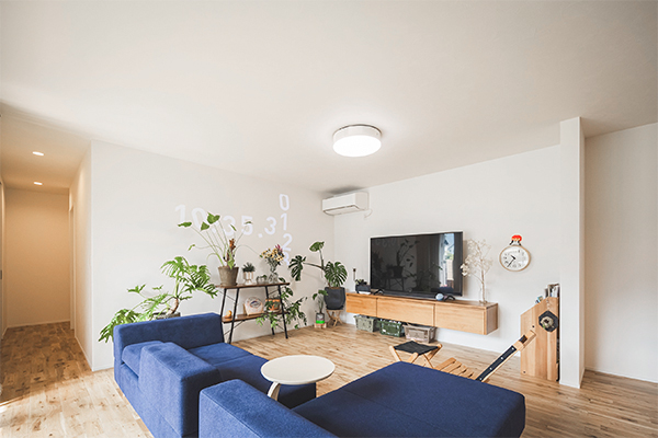 ソファのネイビーがとても映えて「自分たちの家」という印象を強くしてくれたと思っています。