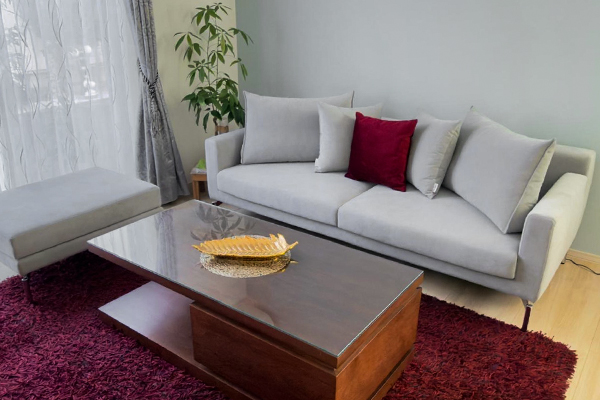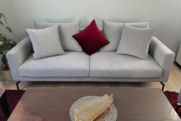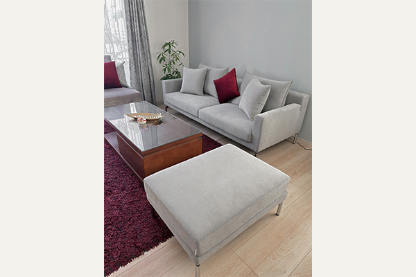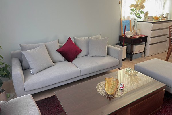 朝に陽光が差すリビングルームと壁紙の色合いを考えて、フレンチグレー色の生地を選んでみたところ、非常にマッチして落ち着いた雰囲気となり、それがとても気に入りました。